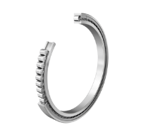 • Solid inner/outer rings with rib-guided rollers, preventing friction and torque increase